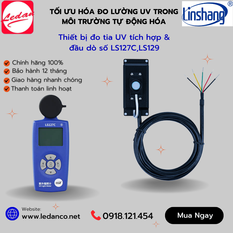 Máy đo tia UV Linshang LS127C & LS129 là dòng thiết bị đo cường độ và năng lượng bức xạ cực tím chuyên dụng từ hãng Linshang (Trung Quốc), được thiết kế dành cho các hệ thống khử khuẩn, diệt khuẩn bằng tia UVC, kiểm tra độ an toàn tia UV trong môi trường y tế, công nghiệp, môi trường.