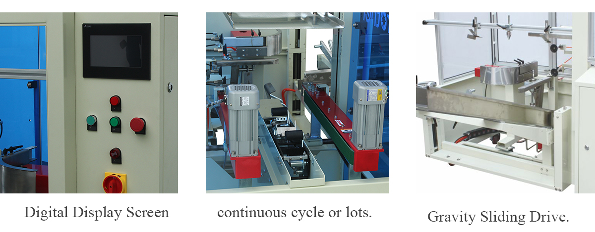 - Tốc độ làm việc cao: Máy cho phép cấp mở thùng và dán đáy thùng carton với tốc độ trung bình 10 thùng / phút. Đáp ứng nhu cầu đóng gói thùng carton tốc độ cao trong nhà máy.