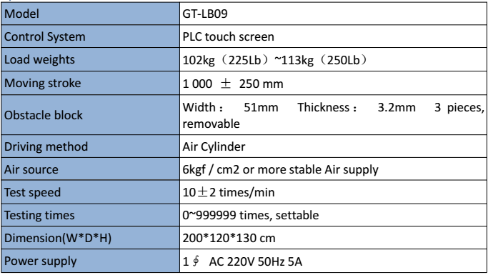 Máy thử này áp dụng cho ghế bệ đỡ có bánh xe hoặc ghế có chân và bánh xe, để đánh giá khả năng của bánh xe , khung ghế hoặc đế ghế chịu được ứng suất mỏi và mài mòn do di chuyển ghế tới lui.